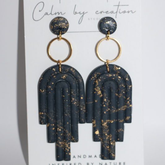 Glitz and Glam - Dark Navy and Gold Statement Earrings