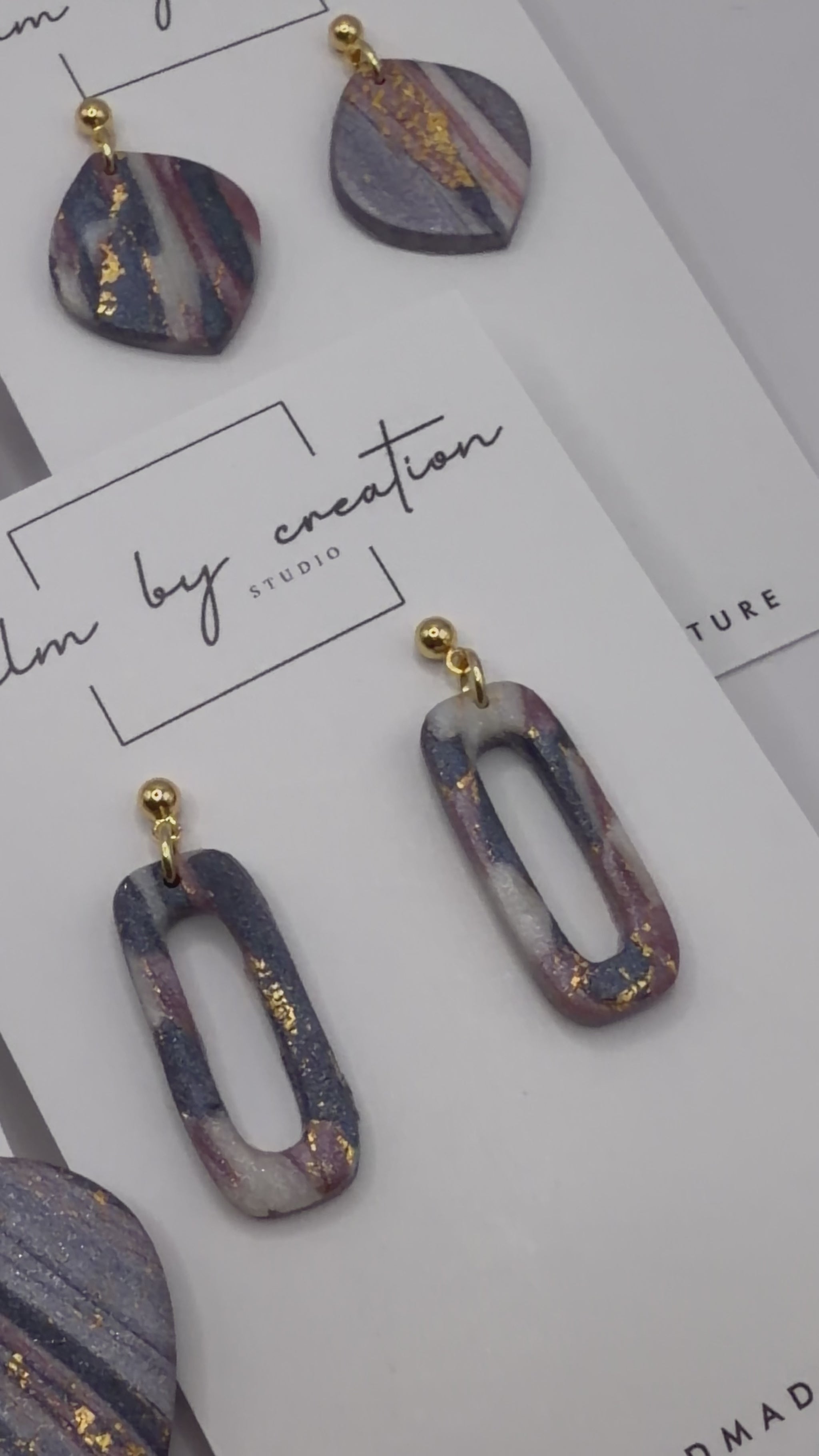 Elevate your everyday style with the Marbled Purple & Gold Collection p a handcrafted earring range designed to bring a touch of calm, colour, and creativity to any outfit. Each pair features a unique swirl of rich purples blended with warm gold accents, creating a marbled finish that feels both luxurious and effortlessly wearable.